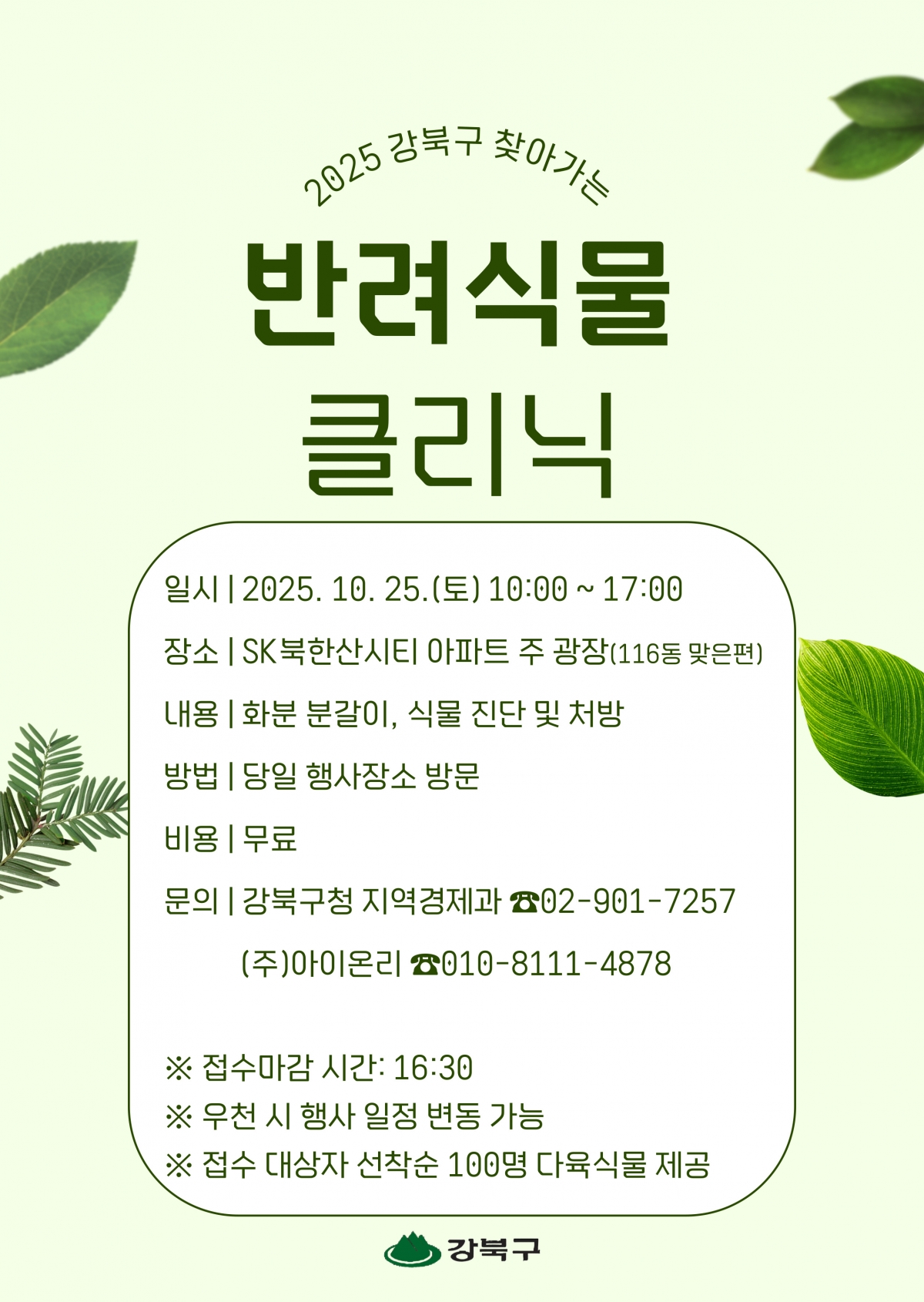 [강북구 제2회 찾아가는 반려식물 클리닉 운영 안내]