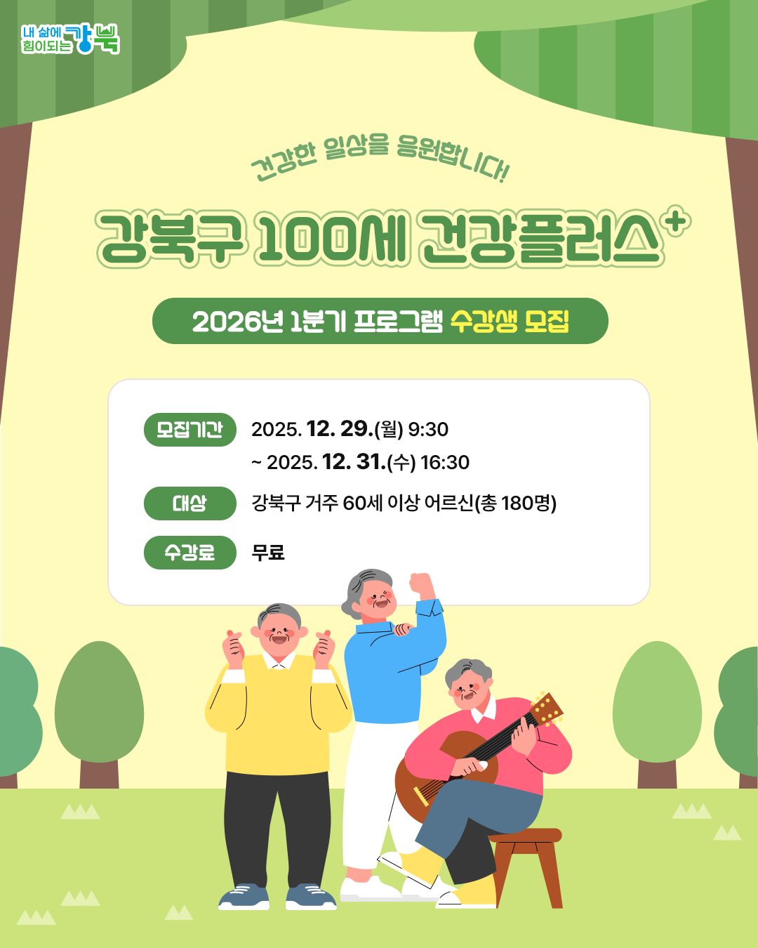 [강북구 100세 건강플러스 2026년 1분기 수강생 모집]