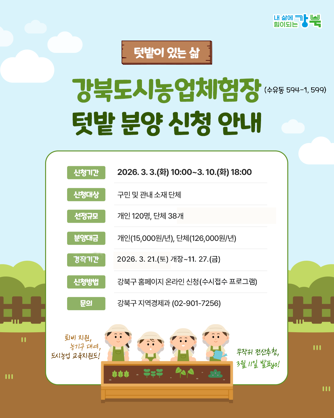 [2026년 강북도시농업체험장 텃밭 분양 신청 안내]