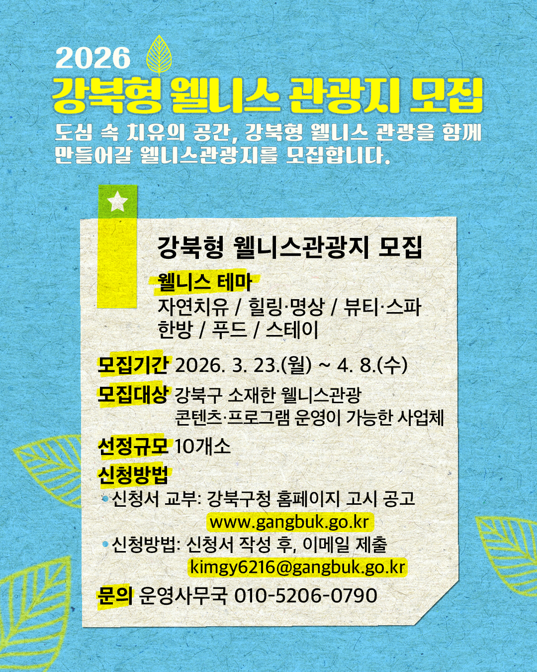 2026 강북형 웰니스 관광지 모집(3.23.~4.8.)
