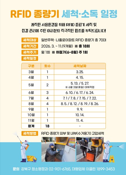 2026년 강북구 일반주택 및 나홀로아파트 대상 RFID 종량기 세척·소독사업 안내