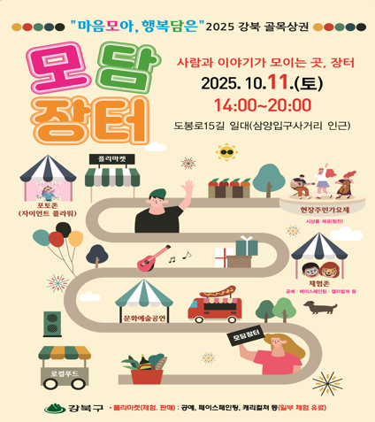 2025 강북 골목상권 모담장터(10.11.), 사일구로 구름축제(10.17.~18.), 미사단길 가을축제(10.19.) 안내