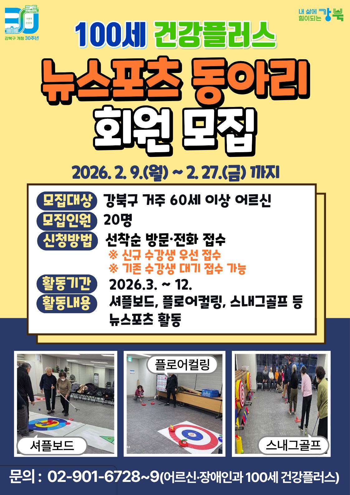 강북구 100세 건강플러스 뉴스포츠 동아리 회원 모집(2.9.~2.27.)