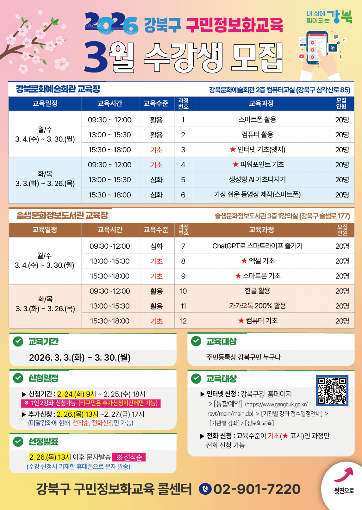 [구민 정보화교육 2026년 3월 수강생 모집]