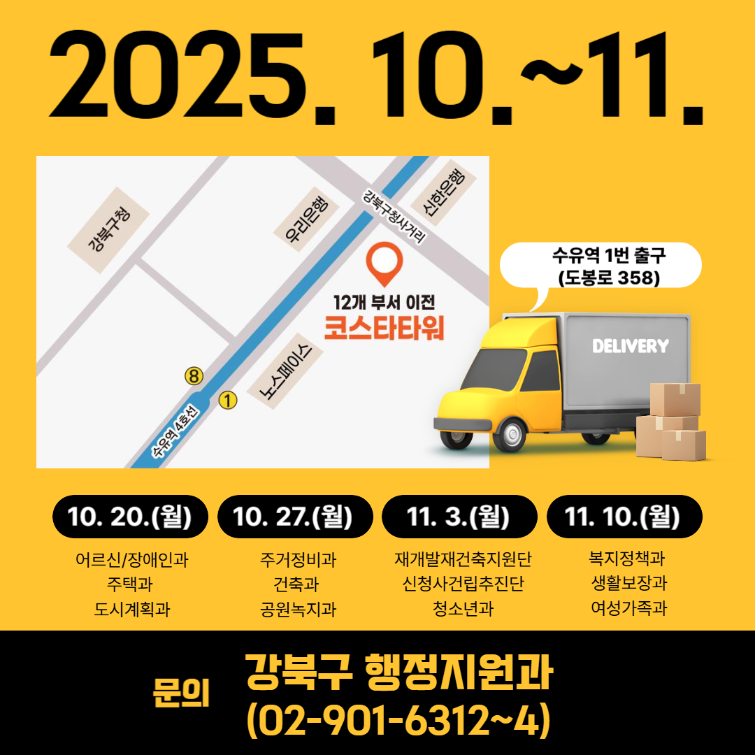강북구 임시청사 2차 이전(12개 부서) 안내_10~11월중
