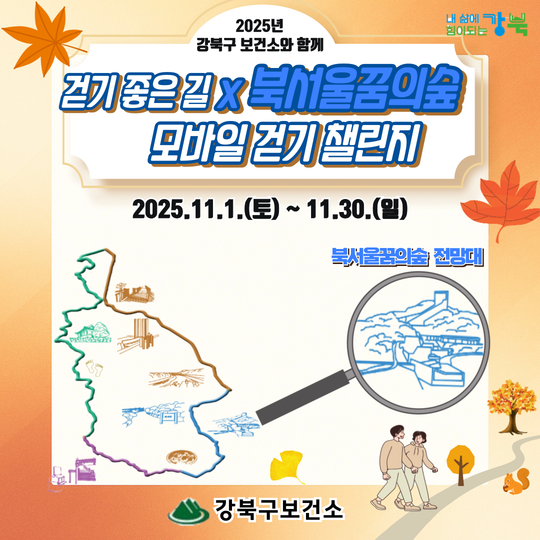 2025년 강북구 북서울꿈의숲 모바일 걷기 챌린지 참여 안내(11.1.~11.30.)