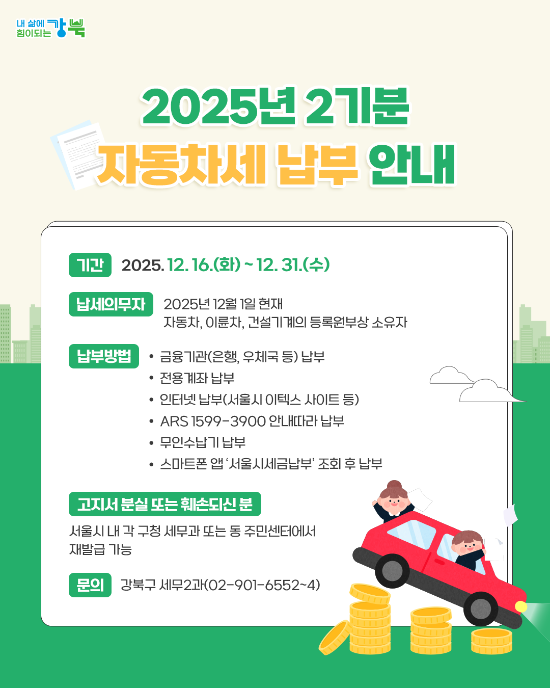 2025년 2기분 자동차세 납부 안내(12.16.~12. 31.)
