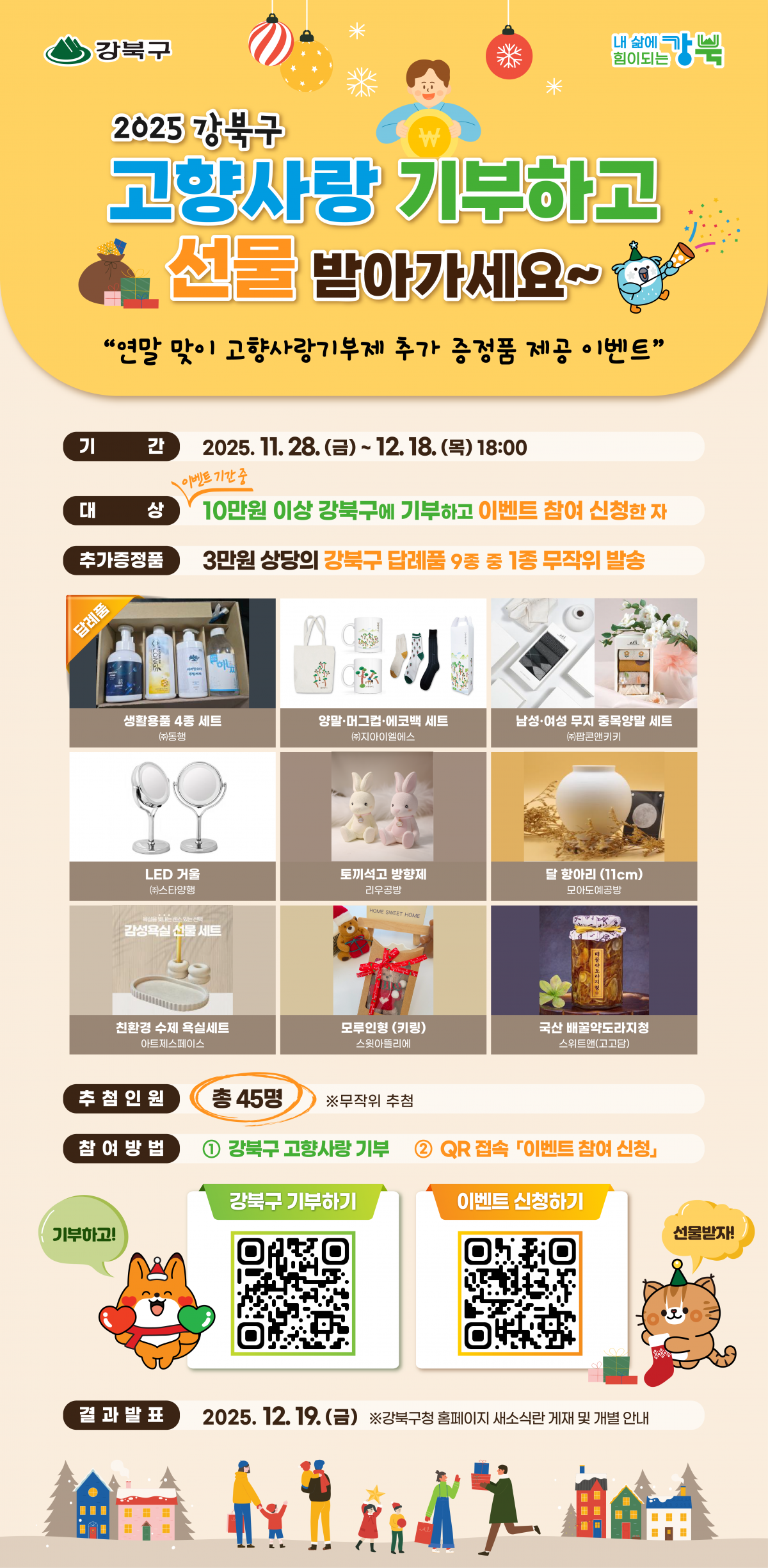 2025년 강북구 연말맞이 고향사랑기부제 추가 증정품 제공 이벤트 진행(~12. 18.)